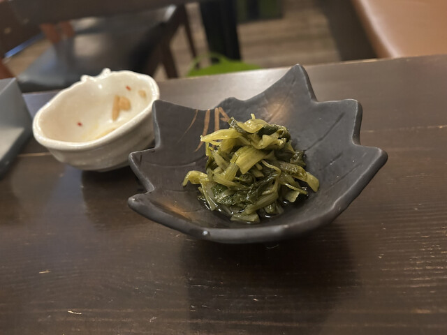 おでんをつまみつつ店名の通りわさびメニューが多いから、わさびの葉漬けを。