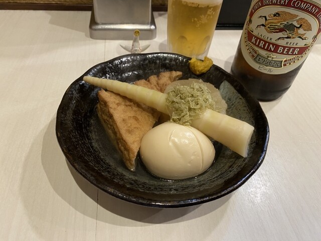 約1年ぶりの来訪です。 平日のディナータイムにお邪魔しました。 暑くても寒くても食べたいおでんを求めてお邪魔しました。 ・ おでん大根(税込 180円) ・ おでん... 詳細を見る
