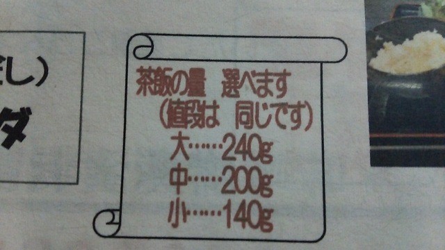 鳥ももの唐揚げ、小鉢2品、味噌汁、サラダ、漬物、コーヒー付で茶飯は量が選べて均一料金です。