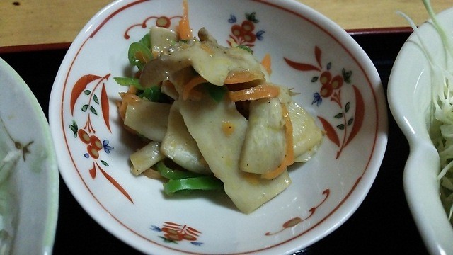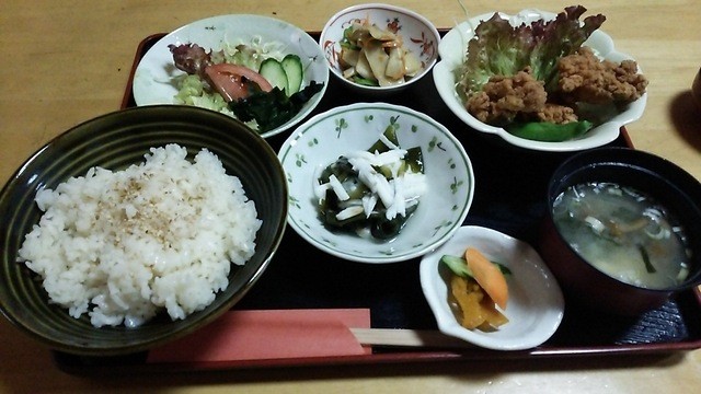 炊いた薄味醤油ご飯で美味しいです。全体的に野菜が多く、とても健康的かつ値段も満足でした。