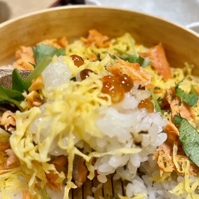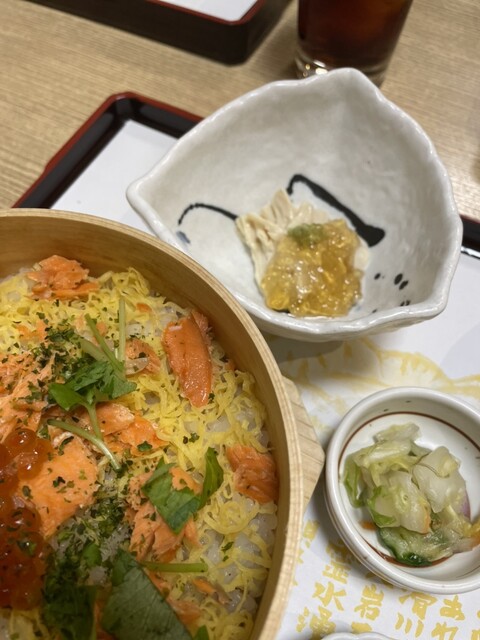 指定されたメニューは、わっぱ飯(鮭とイクラ)です
