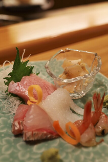 富山駅から徒歩5分ほどの駅近にある「美喜鮨」にて夕食。 ここは以前富山に来た際に2回ほどチャレンジするも予約が取れず入れなかったお店。今回は早めに予約しておいたので3度目の正直でやっと来れました。 特上鮨(6,500円)を注文しました。 最初に小鉢でゲソの酢の物。柔らかなイカ、酢で... 詳細を見る