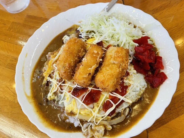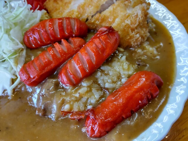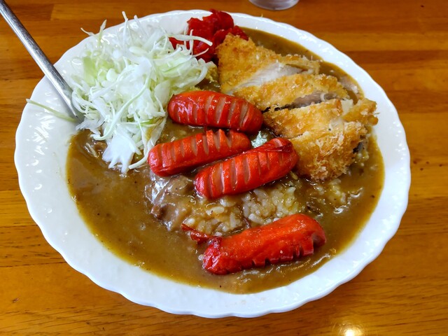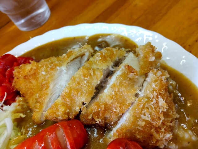 店内に入ると11時の開店直後と言うこともあり、一番乗りのよう。『カツカレー』(税込み900円)を発注。10分近くの待ち時間に、学生さんや作業員のような方が...