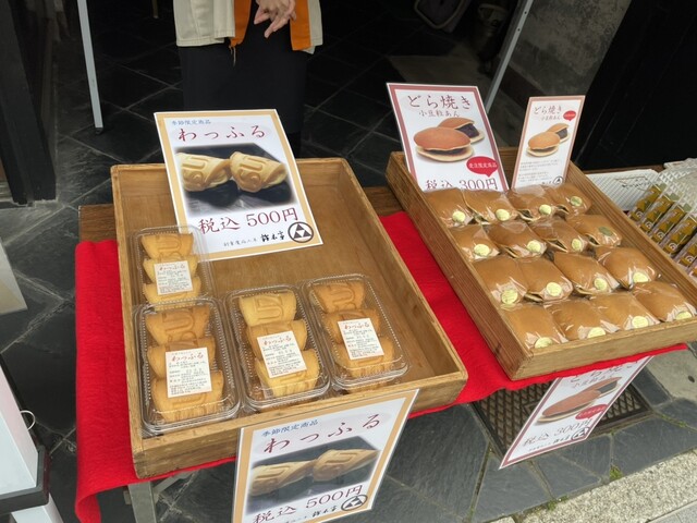 どらやき 皮薄め 粒あんがパンパンにつめられています!びっくりするほ あんが美味しい! 朝8時から開店 杢目の壁、格天井も杢目 こだわりの内装。羊羹追記 黒糖風味の大黒柱 ネーミングが黒糖好きな老父にぴったりと選択 帰宅して頂きましたら 琥珀色の杢目と黒糖羊羹の味わいが素晴らしい!! 艶々