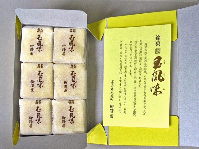 【2023年8月13日訪問】 富山市八尾町の「柳澤屋」さんで、富山県の代表銘菓「玉風味」をいただきました。ふっくらとしたお餅の中に、なめらかなこしあんがたっぷり。甘さは控えめ... 詳細を見る