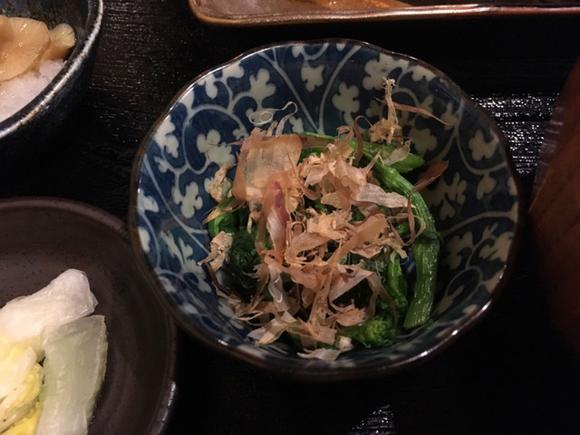 お通し生ハム、羽根屋純米大徳利、お惣菜2点、さけ西京焼き、とろろ昆布おにぎり(梅)。 おにぎりを食べている時に温かいお茶を頼んだら、耐熱グラスになみなみのお茶(500円)を頂いた... 詳細を見る