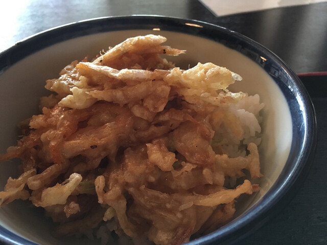 日替わり定食、白エビかき揚げそば、うどん、なべ焼きうどん、白エビ天丼などどれも800円均一で、日替わり定食は白エビコロッケに惣菜が付いてきます。コスパ的には日替わり定食が良いですが、既に寿司を食べてきたので、白エビ天うどんにしてみました。白エビと玉ねぎの小さめのかき揚げが入...