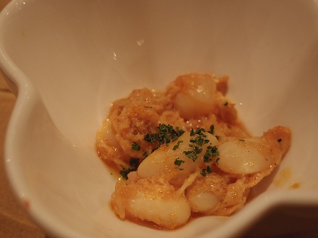 お通しは白インゲン豆をトマトソースで煮たもの。
