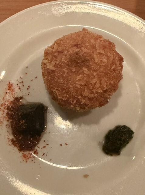 イタリアンバー。 予約して行くと、満席の札が出てました。店内は暖色系の照明で、入ってすぐのカウンターは酒場風、奥のテーブル席はイタリアらしき画像が流れています。カウンターでは... 詳細を見る