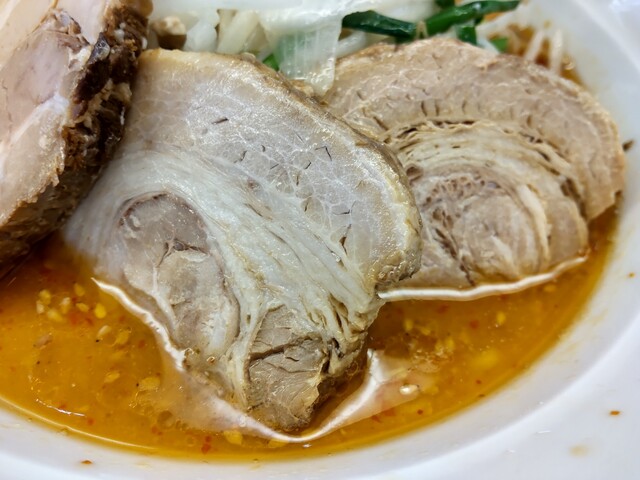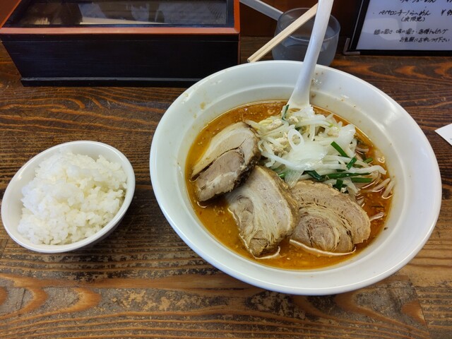 鶏ガラベースのスープに信州の味噌と地元の味噌を数種類ブレンドし、最後の一滴まで飲み干せる味噌野菜になっています。 しょう油の濃口は富山伝統の味を残しつつ複雑な出汁の味をプラスしています。