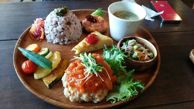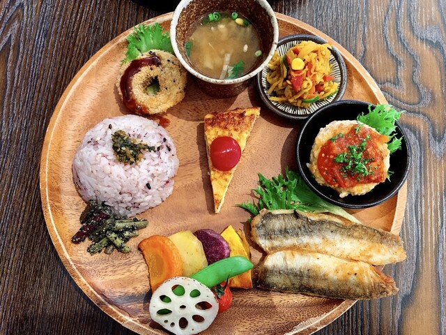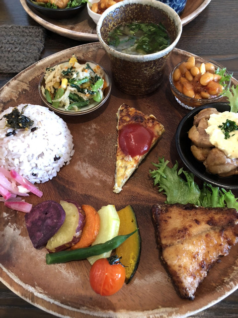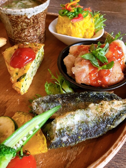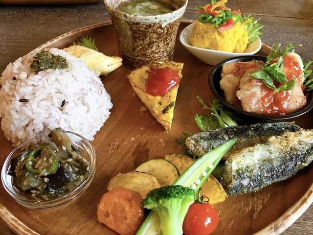 お野菜たっぷりのランチプレートのお店。 お野菜たっぷりプレート(1180円):メイン+雑穀入り御飯+お味噌汁+副菜が5品付きました。メインは豆腐入り鶏つくねバーグと、魚のカレ... 詳細を見る