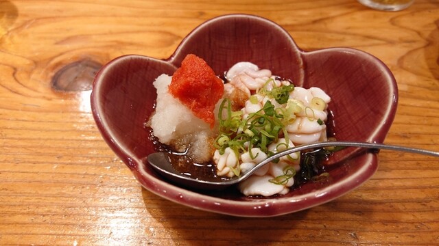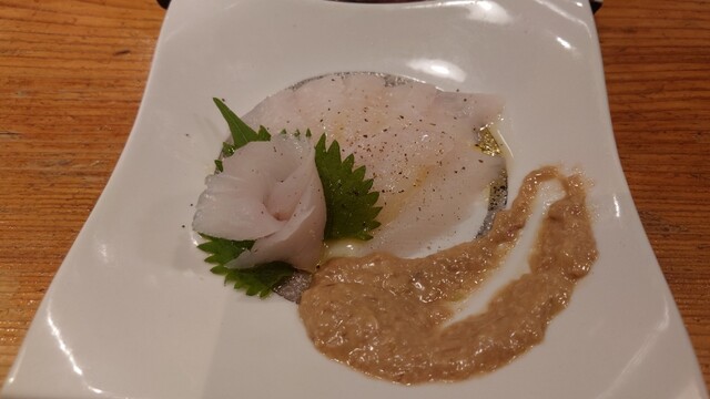 扉を開けて入店。 直前に予約したので刺身盛り合わせが付いてきます。カワハギ肝パッチョ、極上ののどぐろ塩焼き、ブリシャブぽん酢、富山名物黒づくりをオーダー。 ◾️極上ののどぐ... 詳細を見る