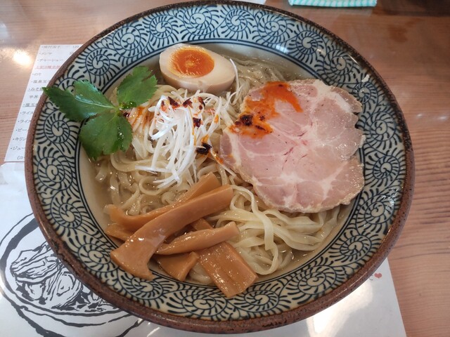 昼食をいただきにお邪魔しました。 思えば、少し前に訪店したはずなのに、またまたお店に伺ってしまいました。 注文したのは、一つ覚えの「塩 油そば 大盛り」です。 温泉玉子、茹でもやし、メンマ、チャーシュー、ネギ、トマト、具沢山に盛られています。 軽く麺と具を混ぜながら、大口を開けていただき... 詳細を見る