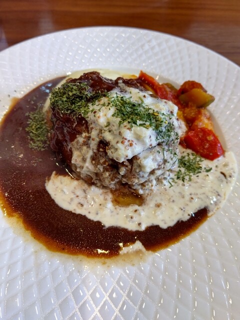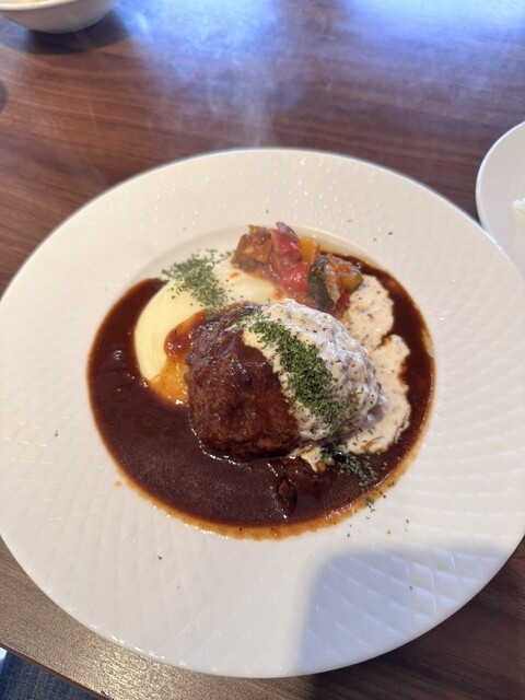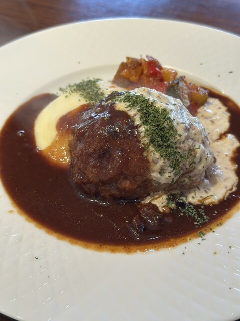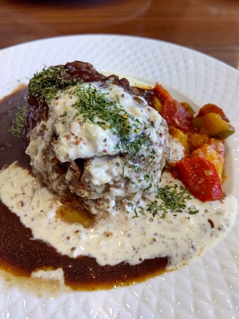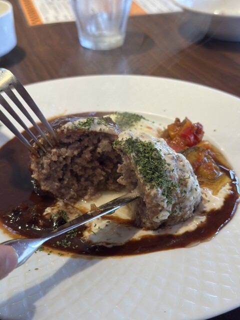 運ばれてきたハンバーグは、見るからにふっくらとしていて、ナイフを入れると中からジュワッと肉汁があふれ出す。まず一口食べると、驚くほど柔らかく、肉の旨味がしっかりと感じられた。ジューシーさが際立っ...