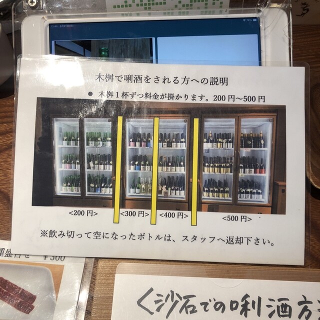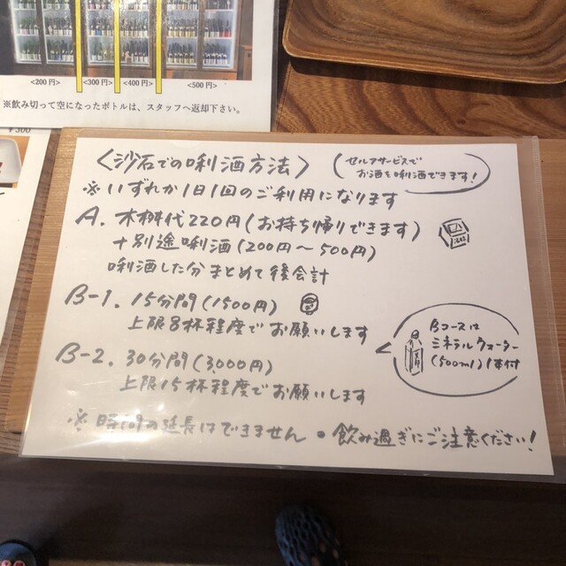 A. 木桝代220円(持ち帰り可)+別途唎酒(200円~500円)