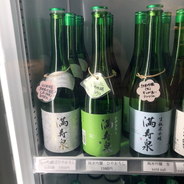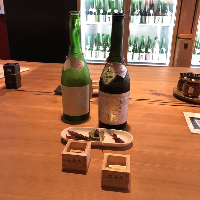 カウンターには、満寿泉がずらりと並んでいる。販売されていない銘柄を含めて三十種類以上。ここでしか出会えない酒が確かにある。オレが選んだのは「寿プラチナ」「純米吟醸ひやおろし」「純米吟醸LE(特定販売店用)」「搾り」。どれも香りが立ちすぎず、食事と呼吸を合わせるような酒だった。口に含むと、一瞬で身体の芯がほどけていく。