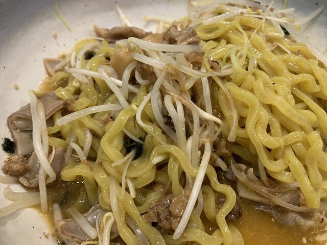 写真は、混ぜて混ぜまくり、あっ期間限定メニューもつ入りまぜそば