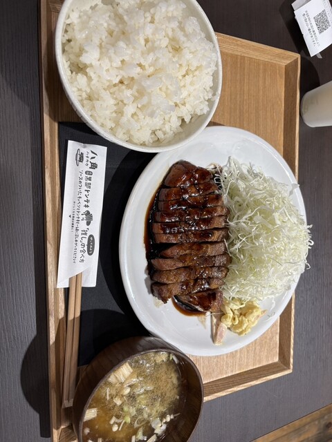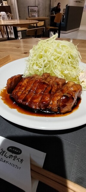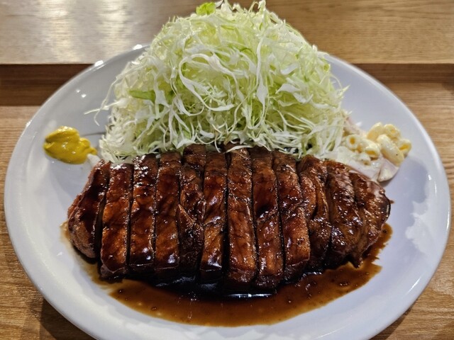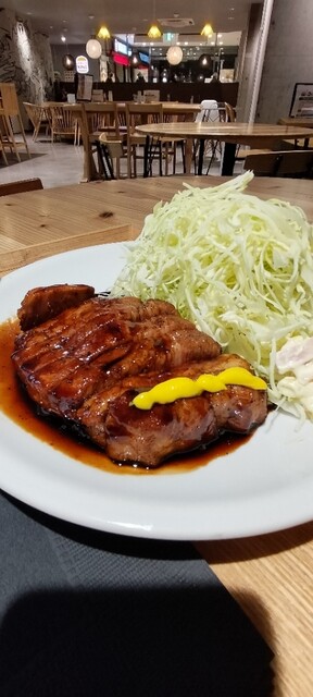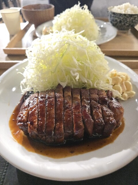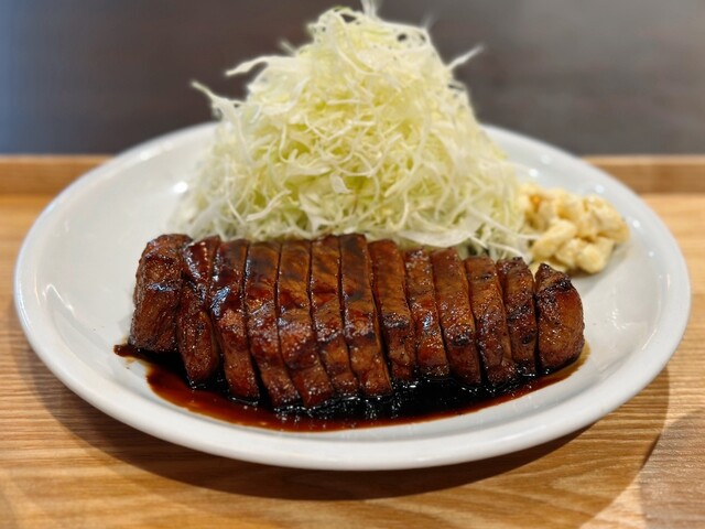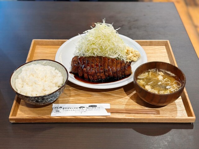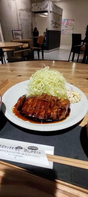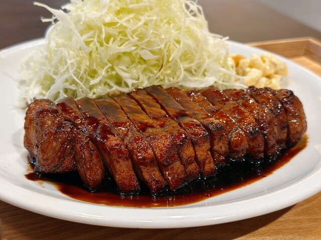 黒部トンテキ定食(ロース)(1,650円) ランチで訪問。フードコート形式になっており厨房のカウンターでオーダーを告げると呼び出しブザーを受け取り少し待つ。オーダーしたのは黒部トンテキ定食のロースで、ご飯の量は中でお願いする。 トンテキはロースとリブロースの二種類あるがリブロースの方が脂身の... 詳細を見る