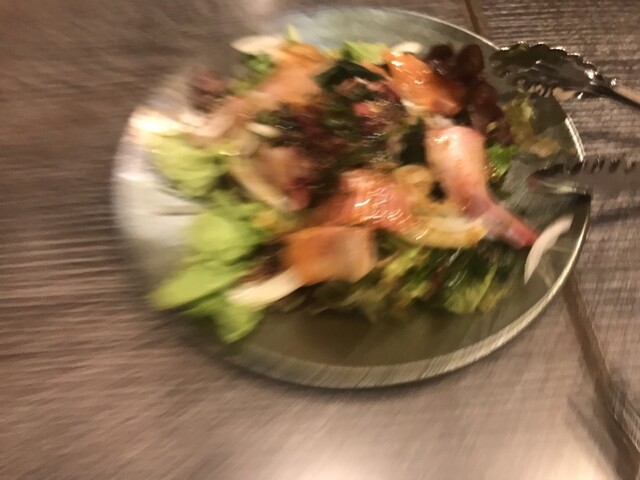 海鮮サラダはいい魚と海藻がタップリで食べ出がある。