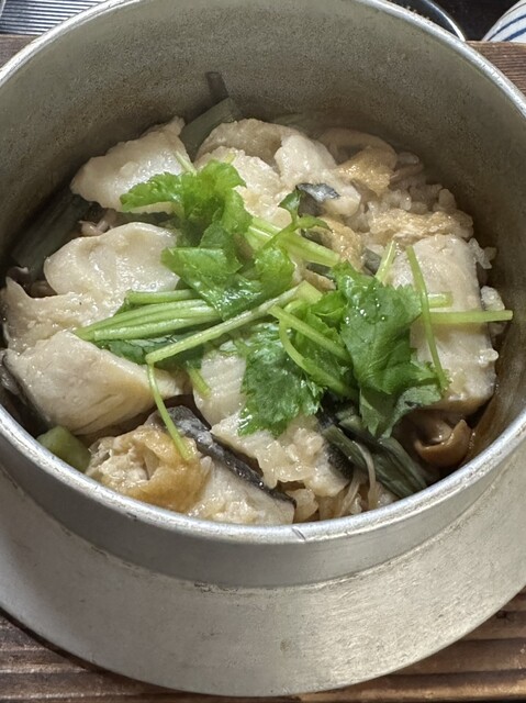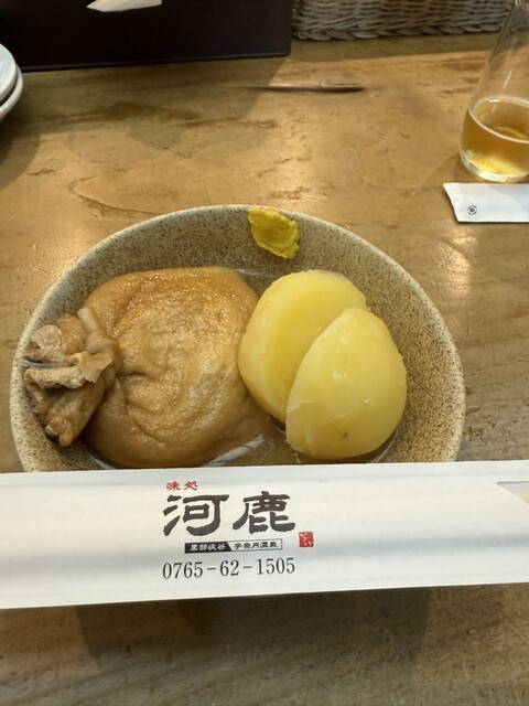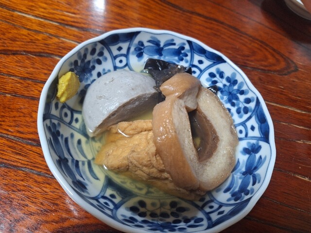 人気No2の黒部名水ポークを使った角煮釜めしと、おでんおまかせ5種盛りを注文。