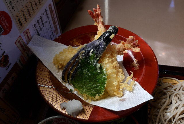 お蕎麦はツルツルで二八位だろうか。香りまであまり感じられませんでしたが、揚げたて天ぷらと相まって美味しかったです。
