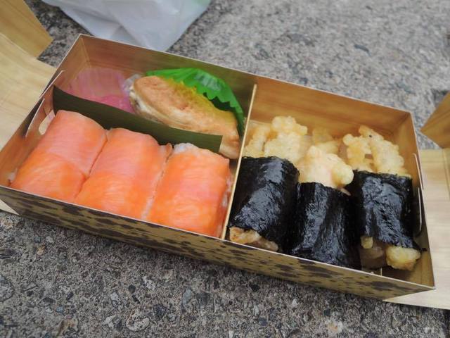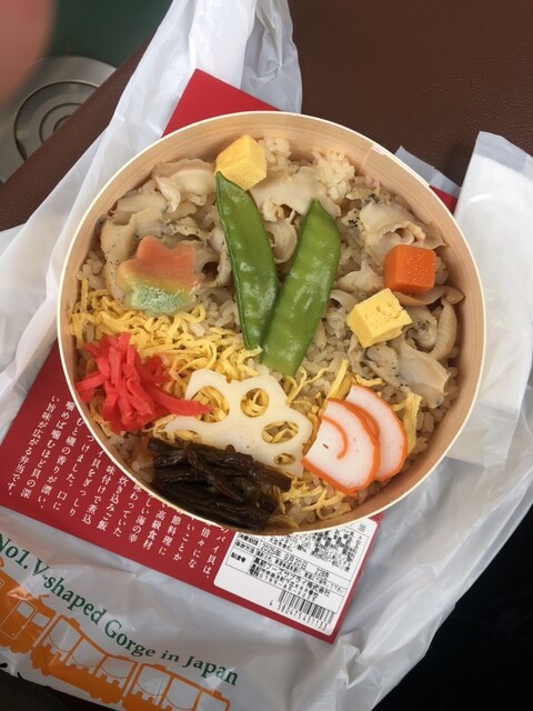 昼御飯がまだでしたので、駅構内の売店で購入しトロッコ電車でいただくことにします。