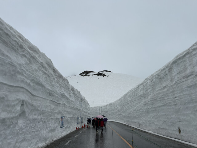 あいにくの雨で良い写真は撮れなかったですが、高さ10メートル以上の雪の壁は迫力ありました。