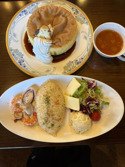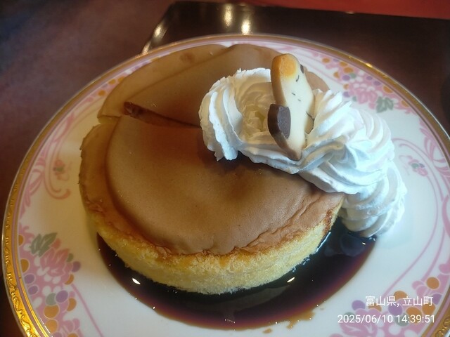 立山ホテルのラウンジでひと休憩。名物のシフォンケーキとコーヒーをいただきました。シフォンケーキのサイズは大きく2人で分けるのがちょうど良いとされていましたが、ふわふわなのでお腹が空いていたら1人で平ら...
