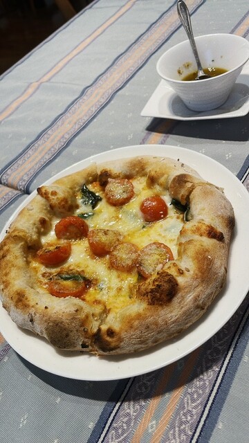 週末18時頃予約して訪問です。一軒家レストランです。一階の入口から入ると天井の高い店内。テーブル席が席間広めでたくさんあり、広めの席もゆったり使えました。メニューを見ますとピザ、パ... 詳細を見る