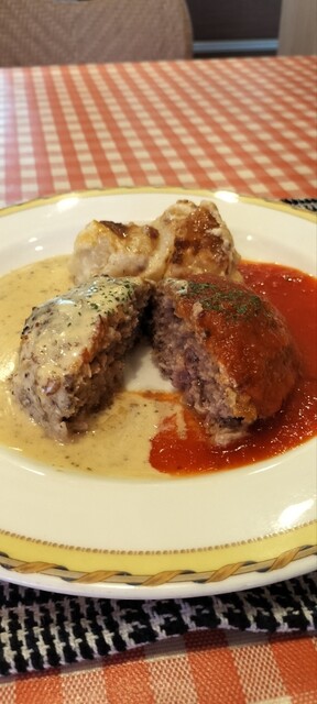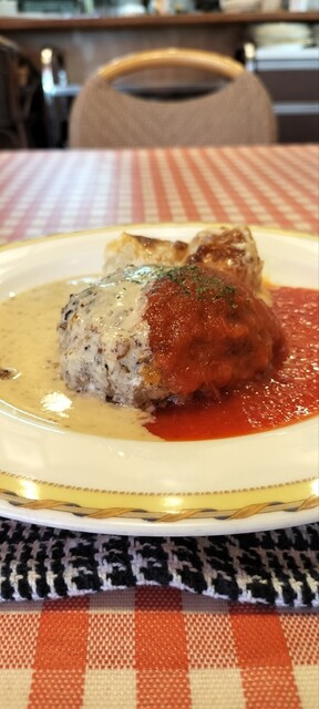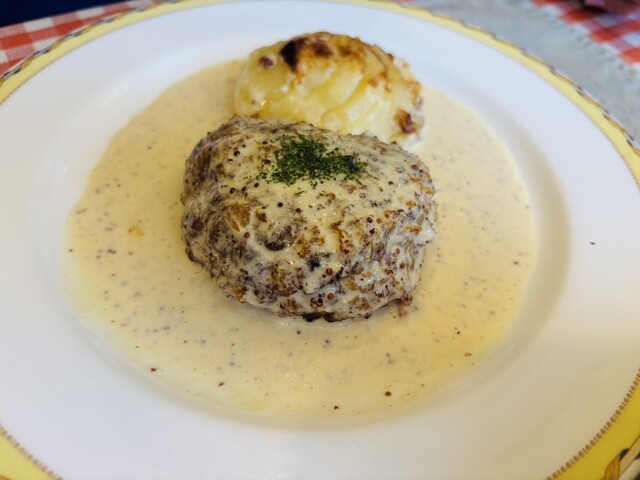 ハンバーグが人気のフランス家庭料理店。 客層は女性やカップルが多い他、家族連れや老夫婦も多くて幅広い、割と気楽なお店です。 あっつあつのオニオングラタンスープ(550円):タマネギをきつね色になるまでじっくりと炒め、ブイヨンを注いでコトコトと煮込んだもの。コクがあって美味しいので、毎回注文し... 詳細を見る