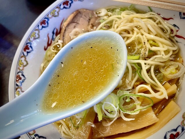 細麺で色合いは優しく、スープは薄めの透き通った感じ。紹介内容では、丸鶏と白だしで仕込んださっぱりスープということで、最後まで美味しくいただけました。