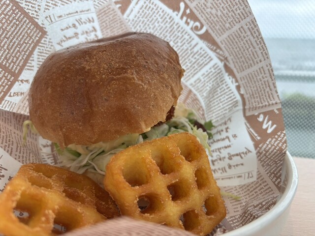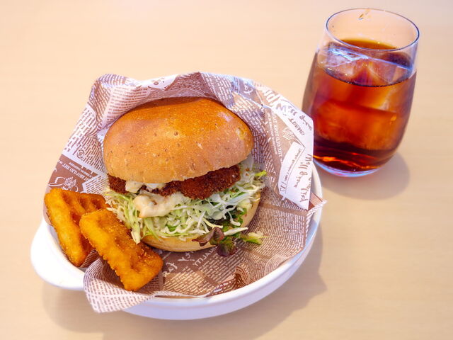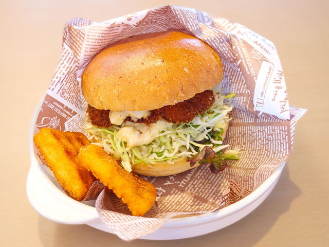 麩のハンバーガーと塩ソフトと白エビのコロッケをオーダーしました。
