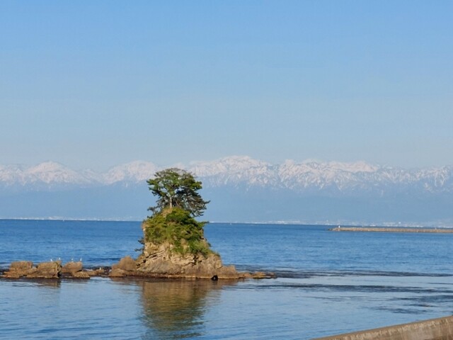 4年前に初めて雨晴海岸へ来てから3回目で初めて立山連峰が見えました。