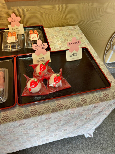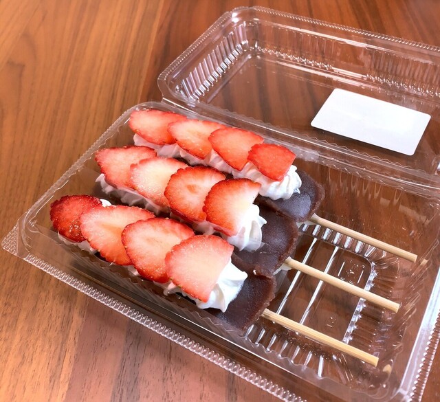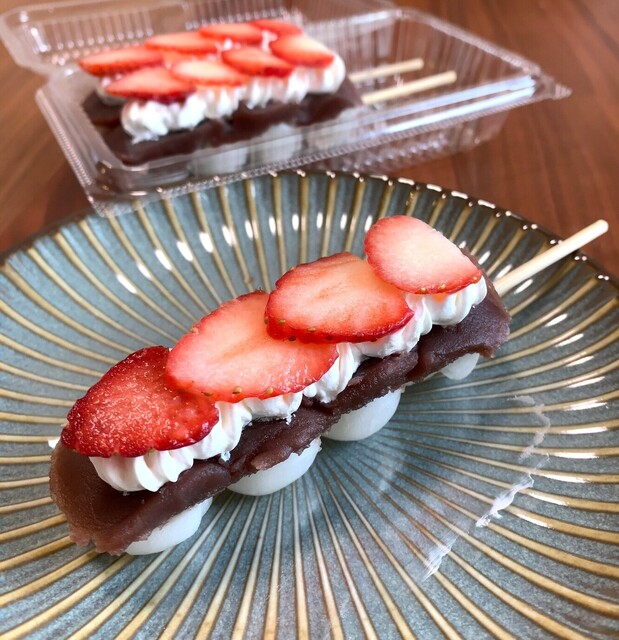 住宅地の中にある小さな和菓子屋さん。 お店自体も、一般住宅を改装した感じです。 いちごの団子(3本648円):団子の上に餡子、クリーム、スライスしたイチゴが乗った可愛い串団... 詳細を見る