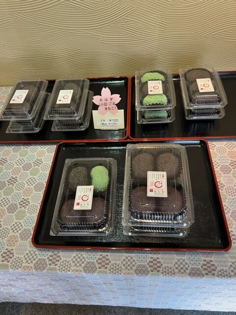 お彼岸らしく、あんこにゴマ、きな粉が、様々な組み合わせのパックで、潤沢に商品が並んでおります。