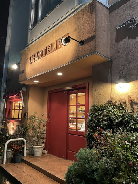 真っ赤な扉が印象的で、壁にはコーヒーカップなど描かれています。