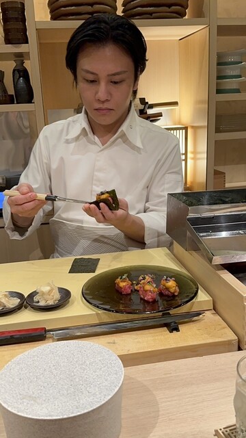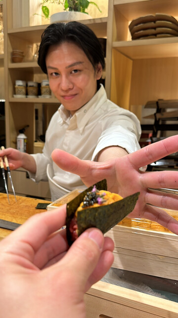 將大間的鮪魚搭配根室的海膽,並撒上法國產的...(by こうじろちゃん)