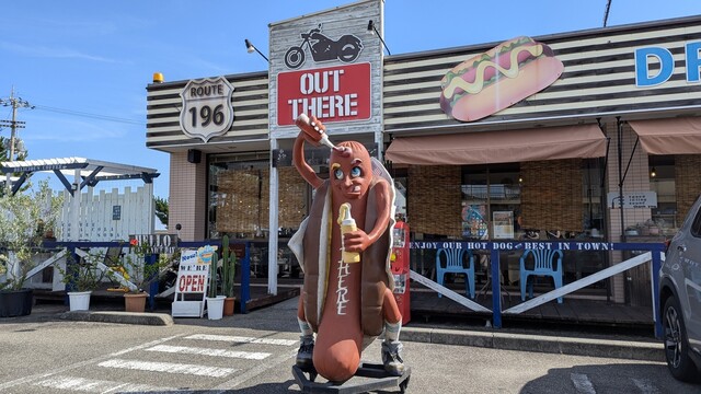 這是一家位於海邊街道的美式外觀的駐車餐廳,讓人忍不住想要進去。 明顯是一對騎士夫婦經營,提供各式各樣的熱狗,還有意外的豐富菜單。 這次我點了【辣味熱狗套餐】1,180日圓。 沙拉搭...查看詳情
