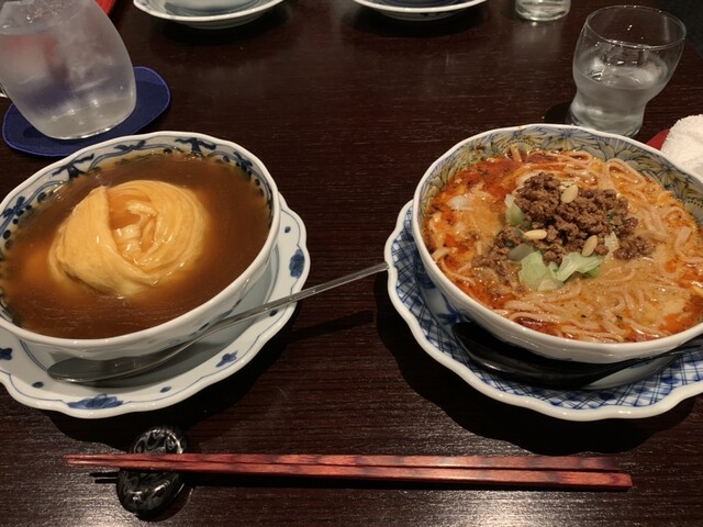我在13點前到達,但沒有等候就能就座。點了一份半份的黑醋擔擔麵和半份的天津飯套餐。