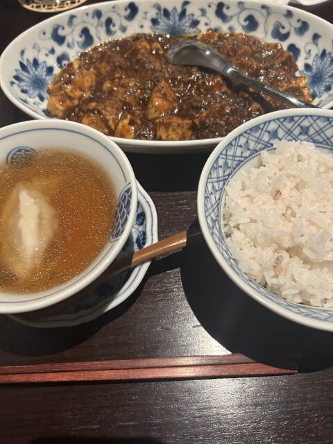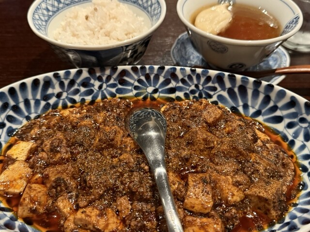 花椒香氣四溢的麻婆豆腐,真心推薦。虽然没有照片,但其實附有麻糬!而且是那種出蒸汽♨️細心製作的,真是太棒了!因此我非常想在用餐後來一碗!