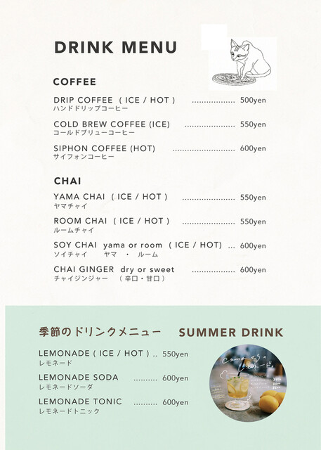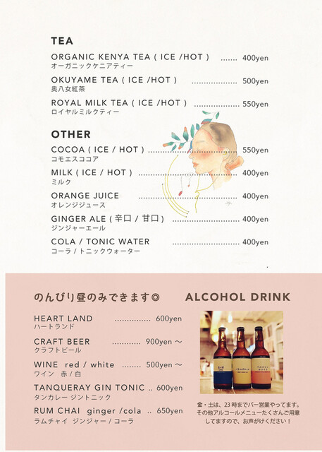 有日本清酒, 有燒酒, 有葡萄酒, 有雞尾酒飲料 |