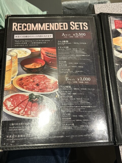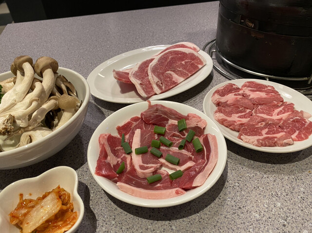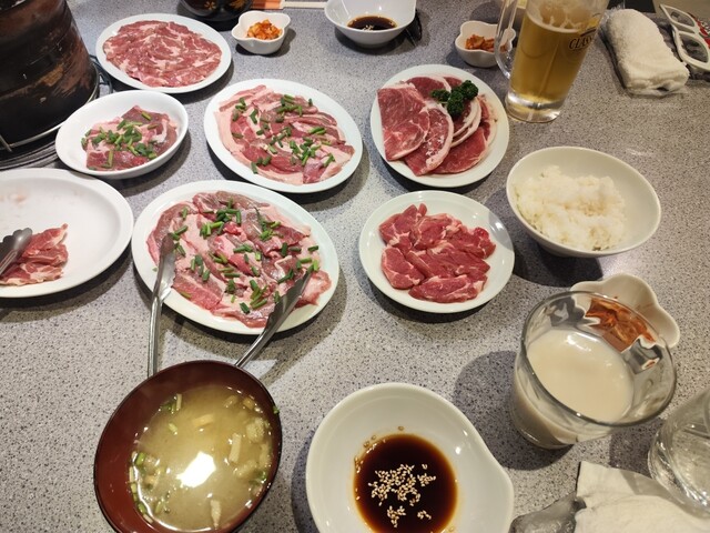 【東本願寺前】B套餐〈羊肉兩人份、白飯、味噌湯、泡菜、飲品〉(2500日圓)☆羊肉燒烤俱樂部