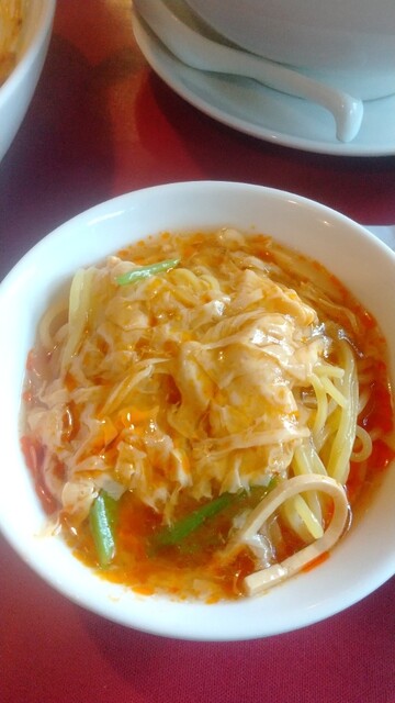 每一道菜都非常美味。醃菜的鹽味剛好,讓啤酒更好喝。麻婆豆腐的甜味比辣味更強。五目炒飯粒粒分明,調味也很棒!最重要的是招牌菜酸辣湯麵,這個湯我可以永遠喝下去~如果要說缺點,就是幾乎所有菜品同時上桌,吃得有點忙。因為麵條會變軟,所以酸辣湯麵最好最後再吃,但我們沒有提前說明,這是我們的錯。因此,我們很快就吃完了,停留時間大約45分鐘。