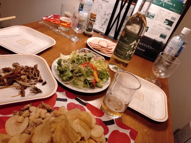 ホテルに戻ってお風呂に入った後部屋でディナー開始。カマンベールチーズはスーパーツルヤで購入した白ワインと美味しく頂きました。一言で言うと食べやすい。味にくせがなくさらっとしつつチーズの味を味わえます。