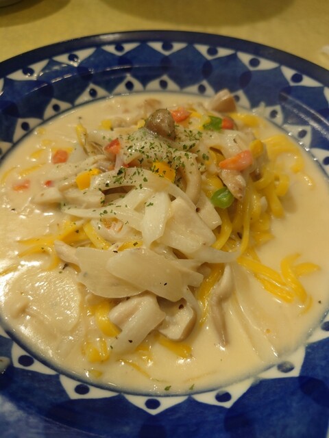 波奇尼奶油義大利麵的生麵條果然不錯,但...