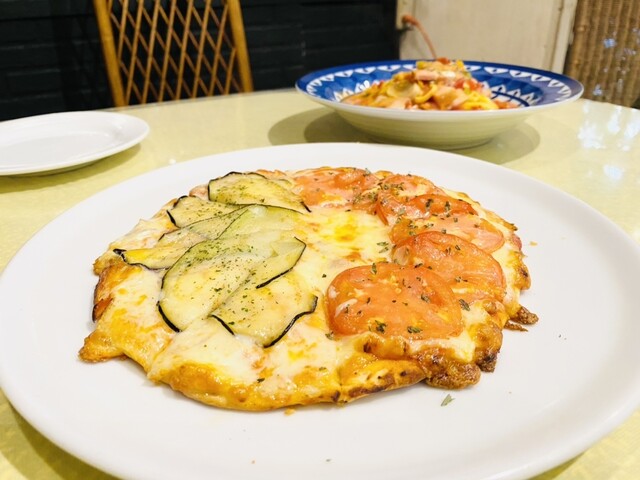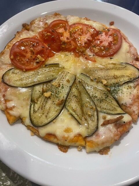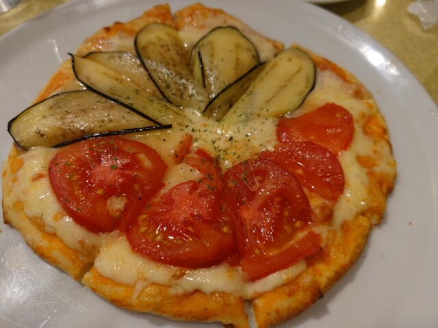 從輕井澤前往中輕井澤的單車旅途中,我們在這裡停留用餐。午餐點了番茄茄子披薩,雖然餅皮很好吃,但茄子、番茄和起司的搭配顯得有些薄弱。希望能再加點香腸或其他配料。