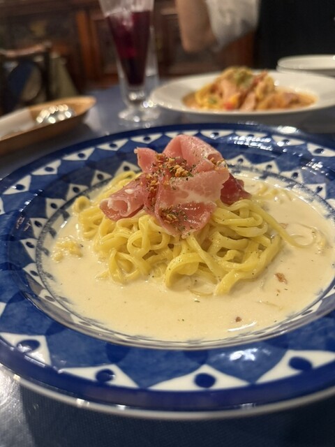 這家店的招牌菜是根據北義大利傳統製法重現的「生義大利麵」。蛋香味濃郁,咬下去時彈牙的口感令人愉悅。與濃郁的醬汁相互融合,每一口都讓人忍不住微笑,實在美味。