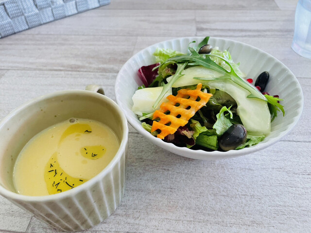 午餐方面,提供意大利麵、基什、咖哩等,配有湯和沙拉,價格在1000日圓左右,對...