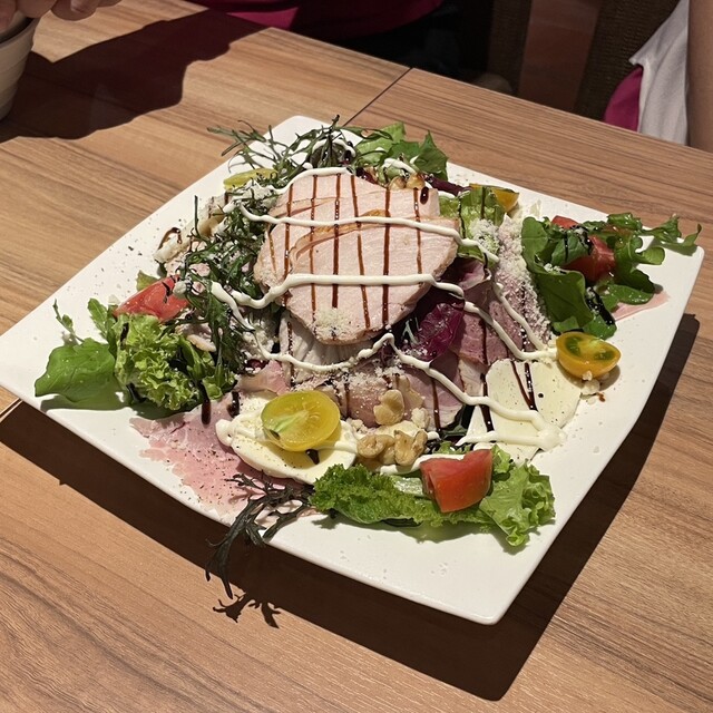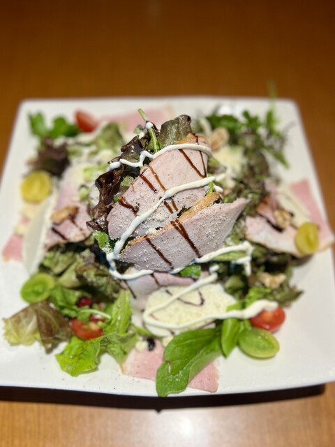 沙拉的香醋和蜂蜜醬汁非常美味。