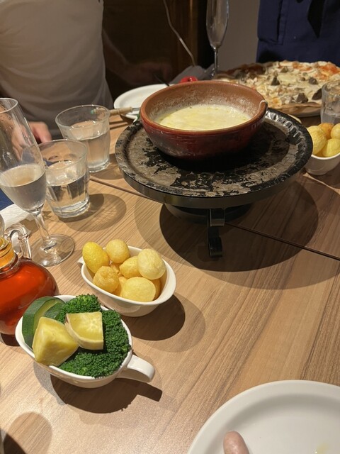我們點了單點菜品、起司火鍋和披薩的套餐(大約兩人份)!